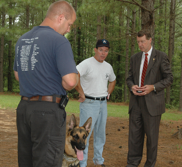 Etheridge visits with area leaders and canine trainer