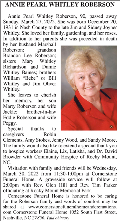 ANNIE PEARL WHITLEY ROBERSON