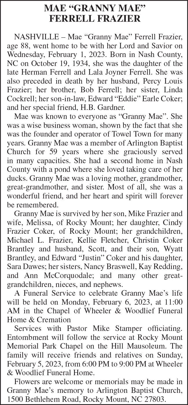 MAE "GRANNY MAE" FERRELL FRAZIER