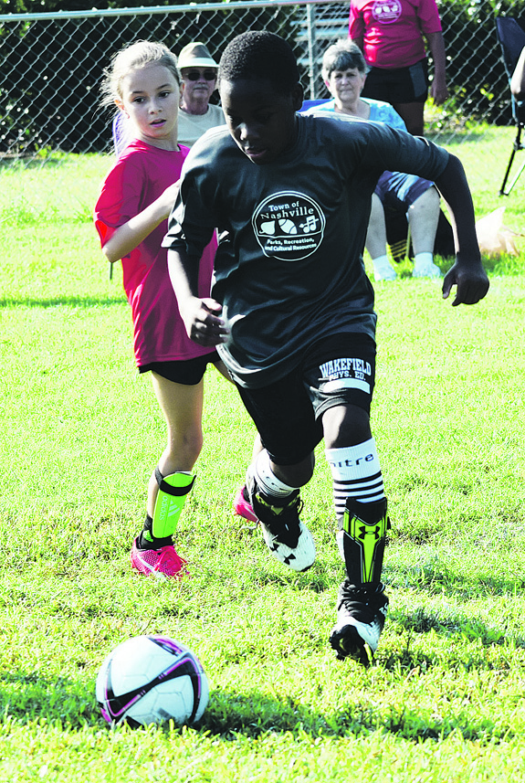 NASHVILLE -- After a week off due to the impending storm, Town of Nashville youth soccer resumed this past Saturday at Glover Park. The first day of fall felt anything but, with temperatures rising making games that much more difficult. In 12U action, Braswell Farms played George's BBQ Sauce in a tight game.